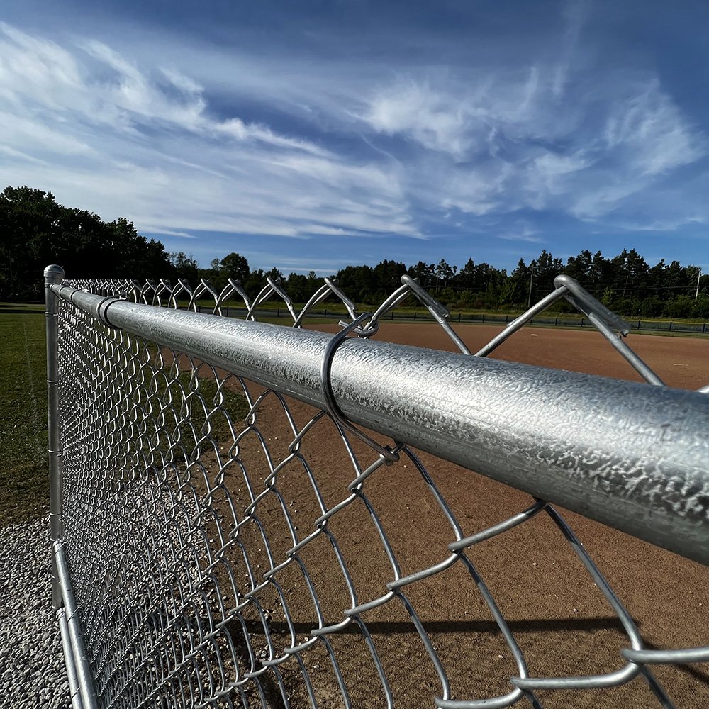 - Tension Bar: connects the cyclone mesh with the tension bands. The tension bar is woven in and out of the diamond pattern on the mesh and attached to the tension bands at every terminating post.